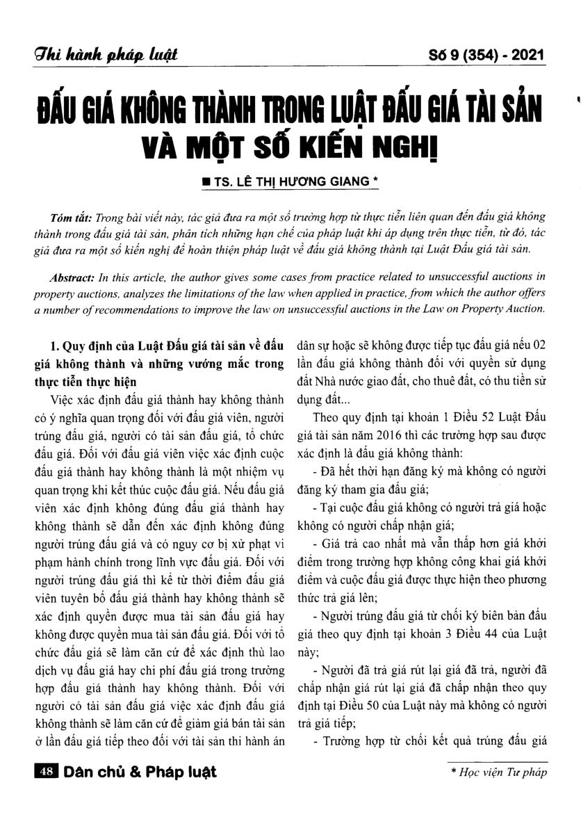 Đấu giá không thành trong Luật Đấu giá tài sản và một số kiến nghị