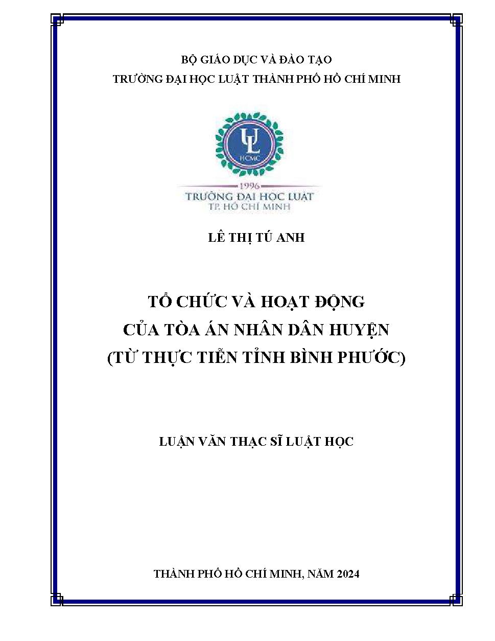 Tổ chức và hoạt động của tòa án nhân dân huyện (Từ thực tiễn tỉnh Bình Phước)